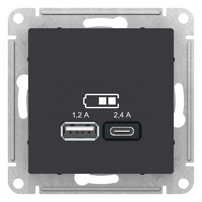 Розетка одноместная скрытая A+С 5В/2,4А 2х5В/1,2 А карбон ATLASDESIGN