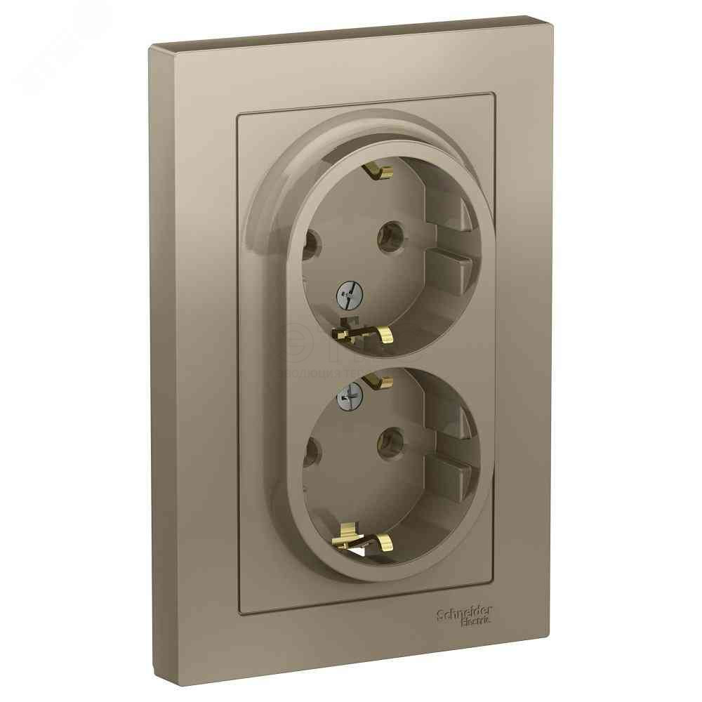 Розетка двойная скрытая З/К 16А 250В IP20 в сборе шампань ATLASDESIGN