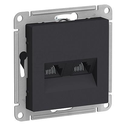 Розетка двойная скрытая компьютерная RJ45+RJ45 5E карбон ATLASDESIGN