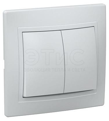 Выключатель двухклавишный скрытый 10А 220В IP20 белый в сборе КВАРТА
