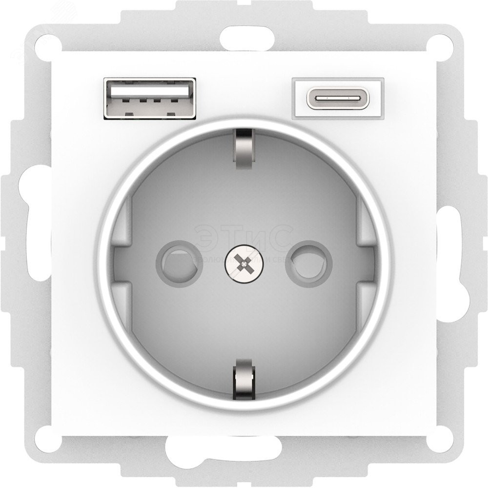 Розетка одинарная скрытая 16А 220В IP20 2 USB А+С мех белая