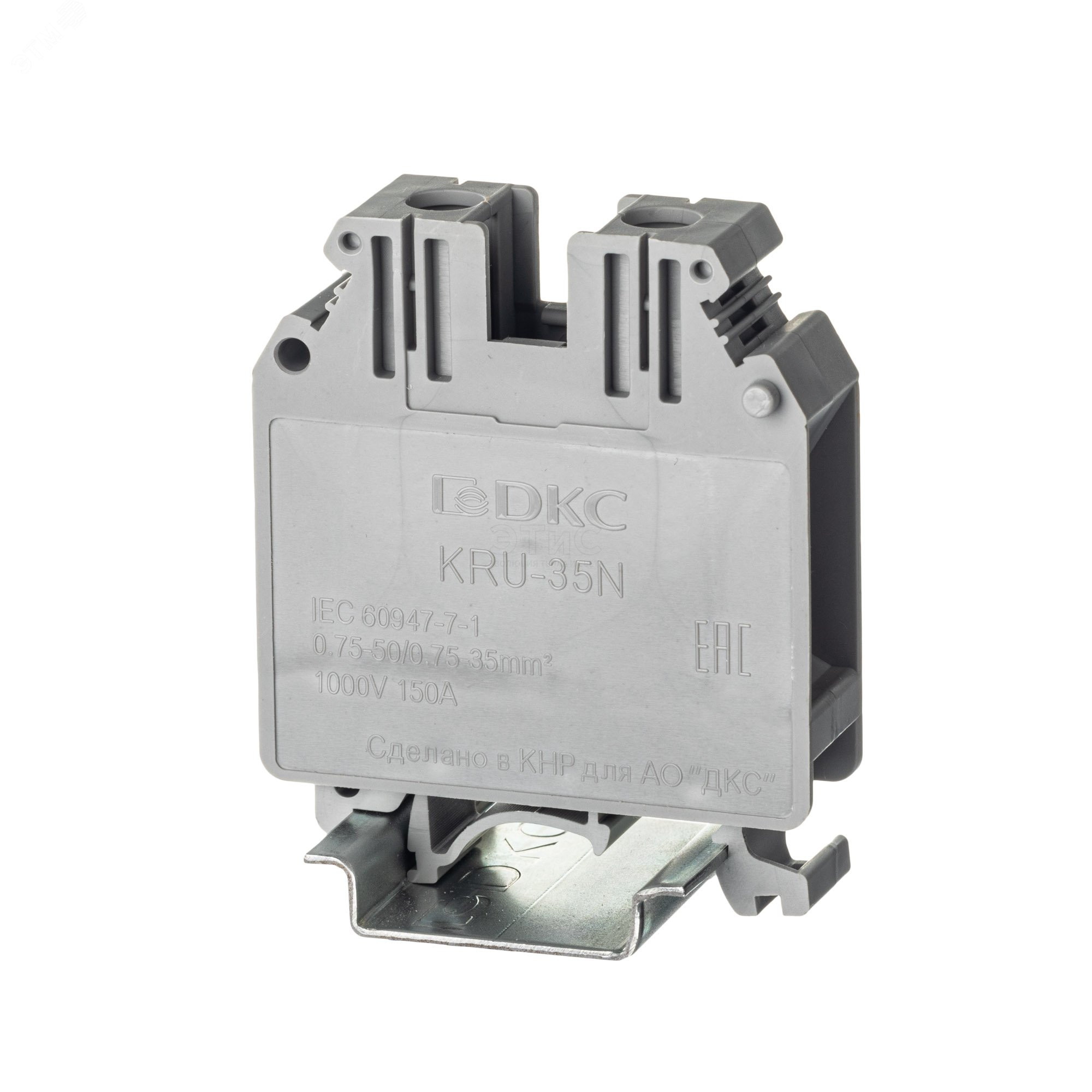 Клемма проходная винтовой зажим 2 точки подключения 35кв.мм. серая