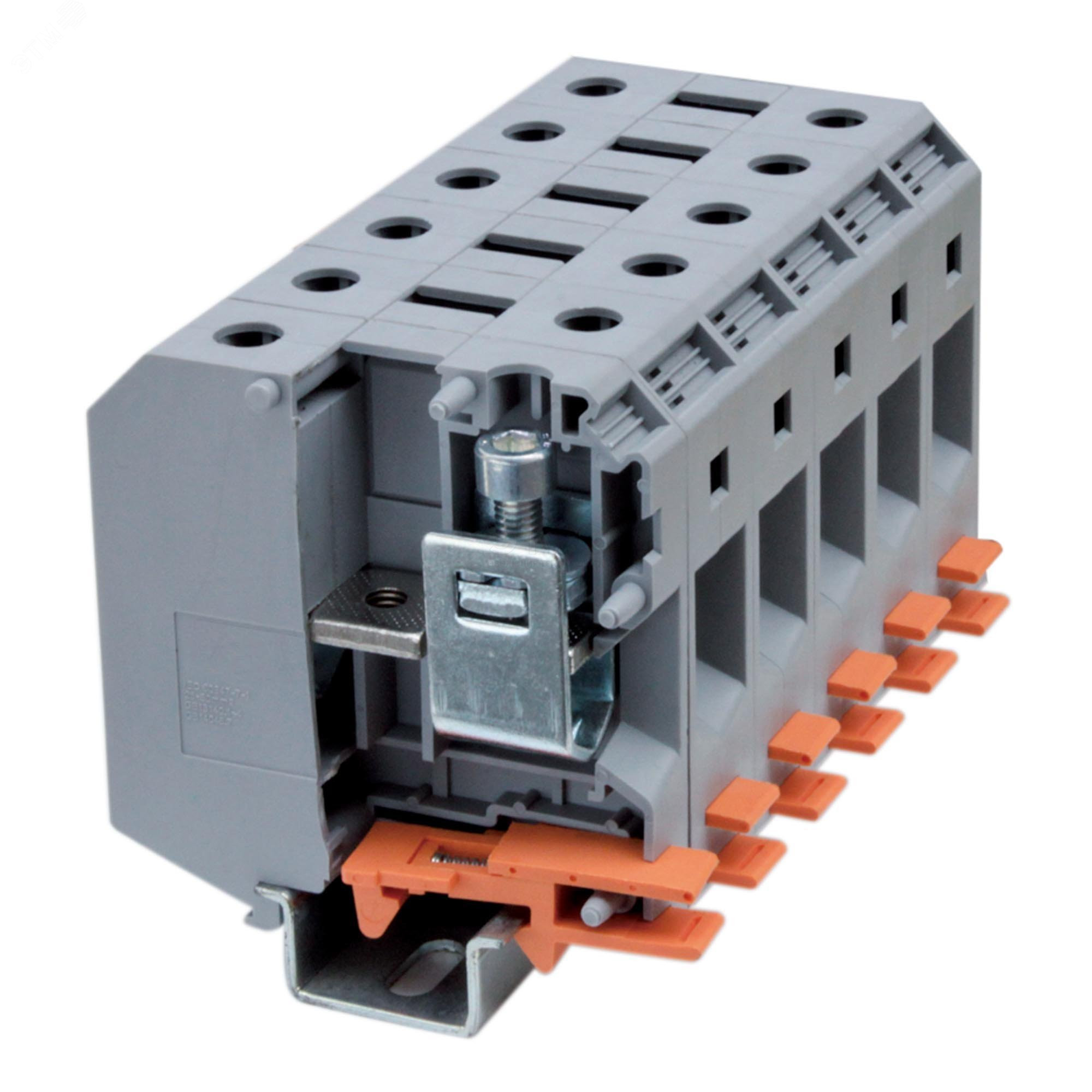 Клемма проходная винтовой зажим 2 точки подключения 50кв.мм. серая