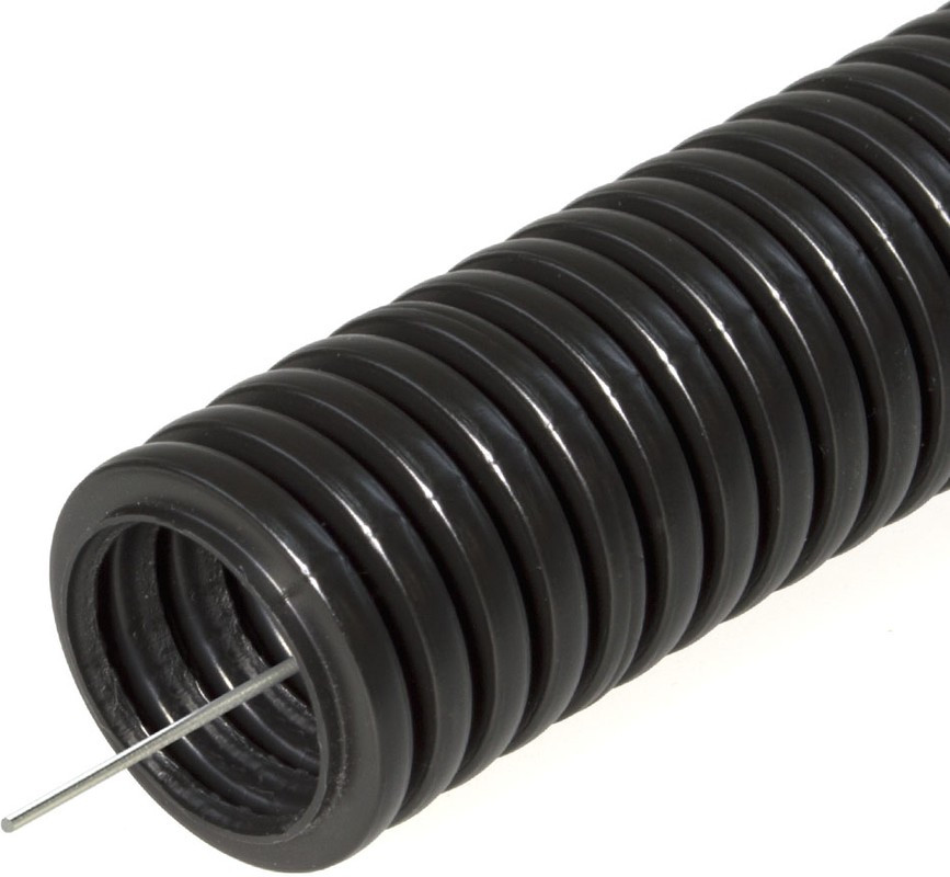 Труба гофрированная ПНД 25мм тяжелая безгалогенная (HF) с протяжкой 750 Н стойкая к УФ черная (50м)