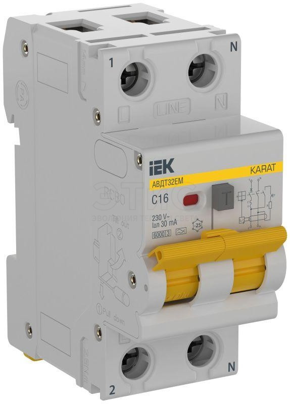 Выключатель автоматический дифференциальный АВДТ32ЕМ 1П С16 30мА 6кА тип А КАРАТ