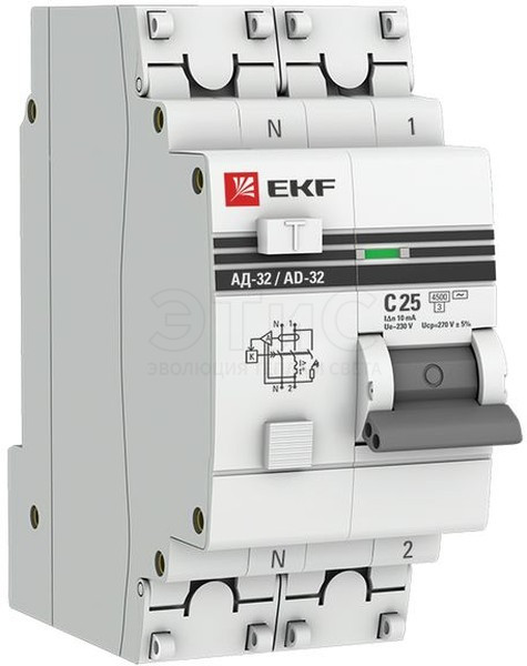 Выключатель автоматический дифференциальный АД-32 2П 25А 10мА C 4,5кА PROxima