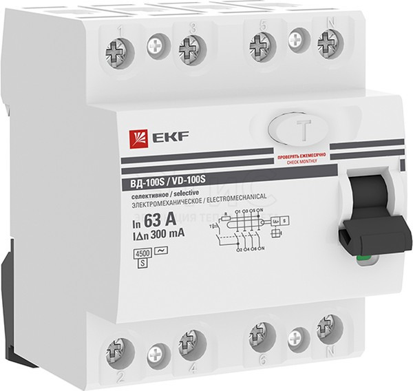 Выключатель дифференциального тока ВД-100N 4П 63А 300мА AС 380В 6кА (S-селективный) PROXIMA