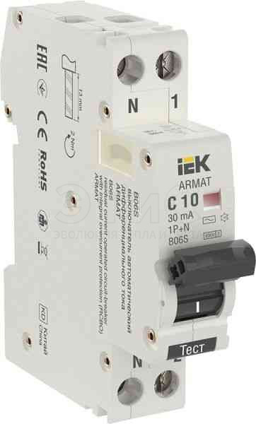 Выключатель автоматический дифференциальный АВДТ 1П+N 10А 30мА 6кА АС B06S ARMAT